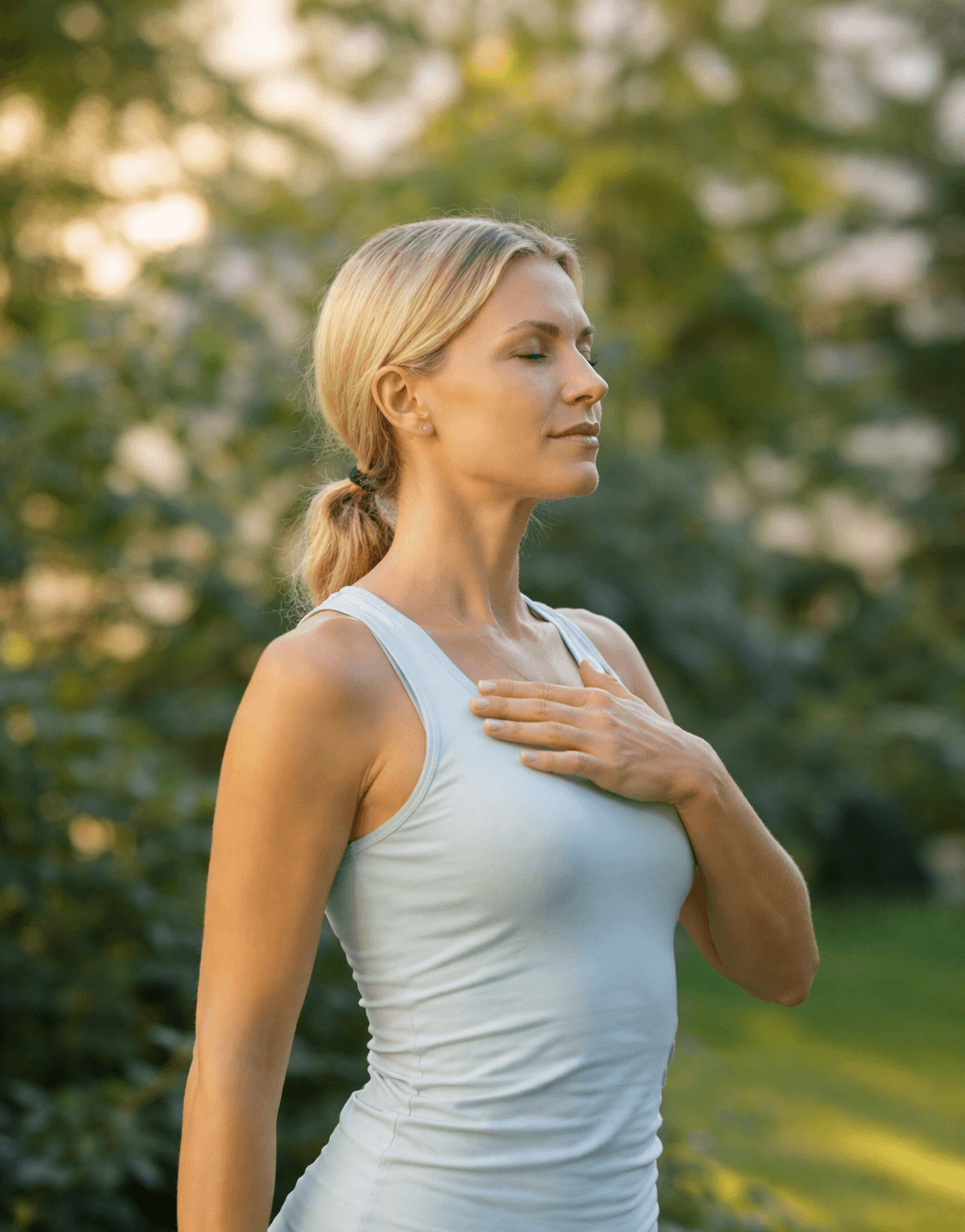 Releasing tension stored in the neck, shoulders, and back